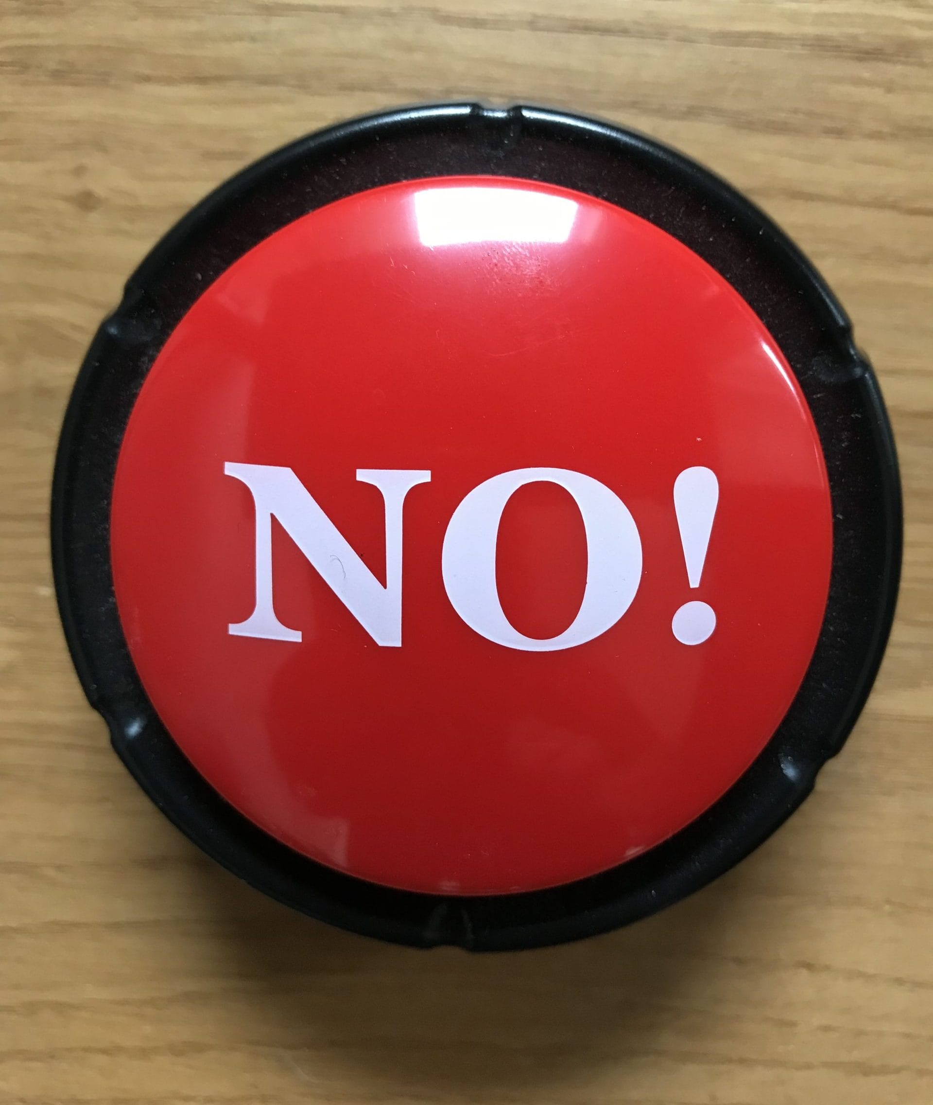 Misschien kan je deze NO-button visualiseren wanneer je het lastig vindt om nee te zeggen. Of laat je het filmpje horen, wanneer iemand jouw NEE niet hoort. Succes!!